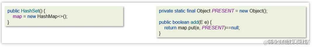 HashSet底层其实是用HashMap实现存储的, HashSet封装了一系列HashMap的方法. 依靠HashMap来存储元素值,(利用hashMap的key键进行存储), 而value值默认为Object对象. 所以HashSet也不允许出现重复值, 判断标准和HashMap判断标准相同, 两个元素的hashCode相等并且通过equals()方法返回true.