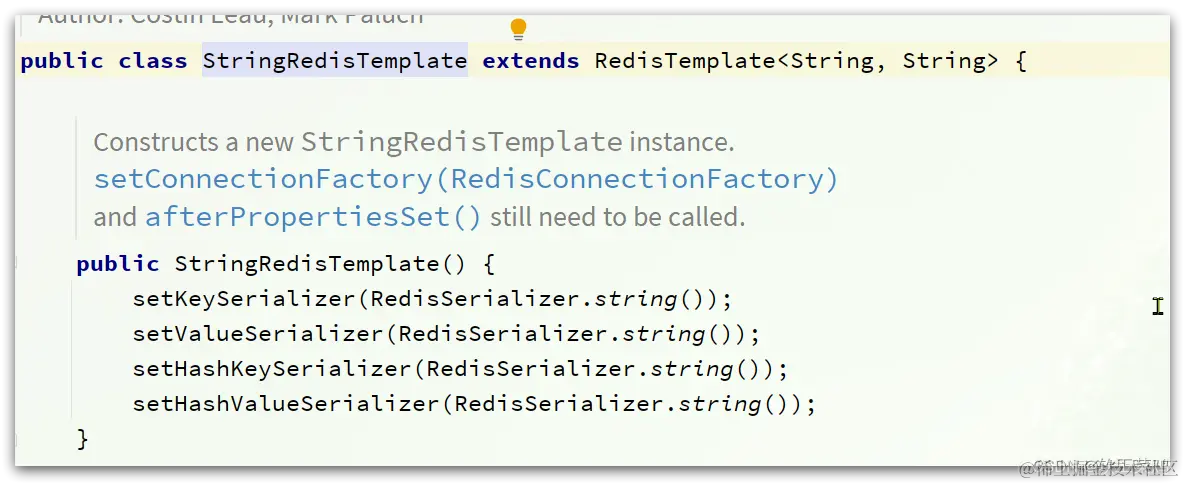 这种用法比较普遍,因此SpringDataRedis就提供了RedisTemplate的子类:StringRedisTemplate,它的key和value的序列化方式默认就是String方式。