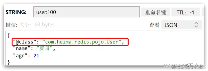 因为存入和读取时的序列化及反序列化都是我们自己实现的,SpringDataRedis就不会将class信息写入Redis了。
