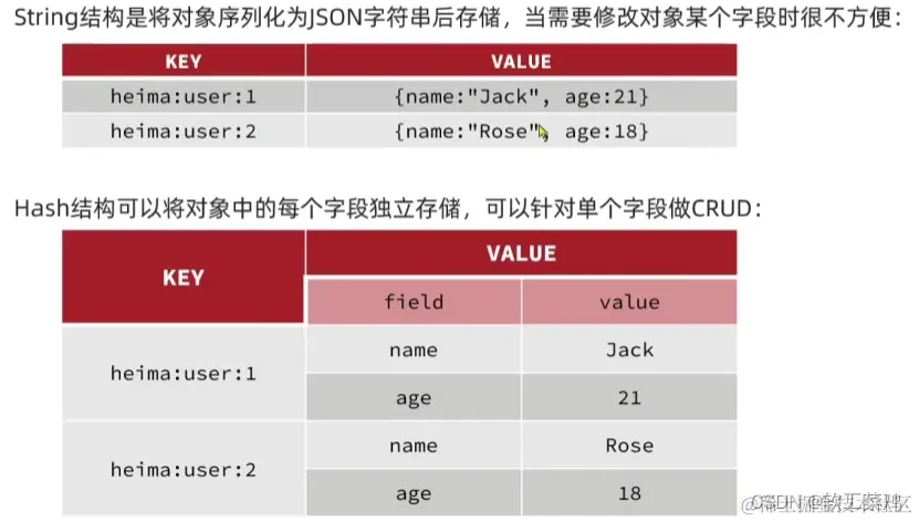 为了节省内存空间,我们可以不使用JSON序列化器来处理value,而是统一使用String序列化器,要求只能存储String类型的key和value。当需要存储Java对象时,手动完成对象的序列化和反序列化。