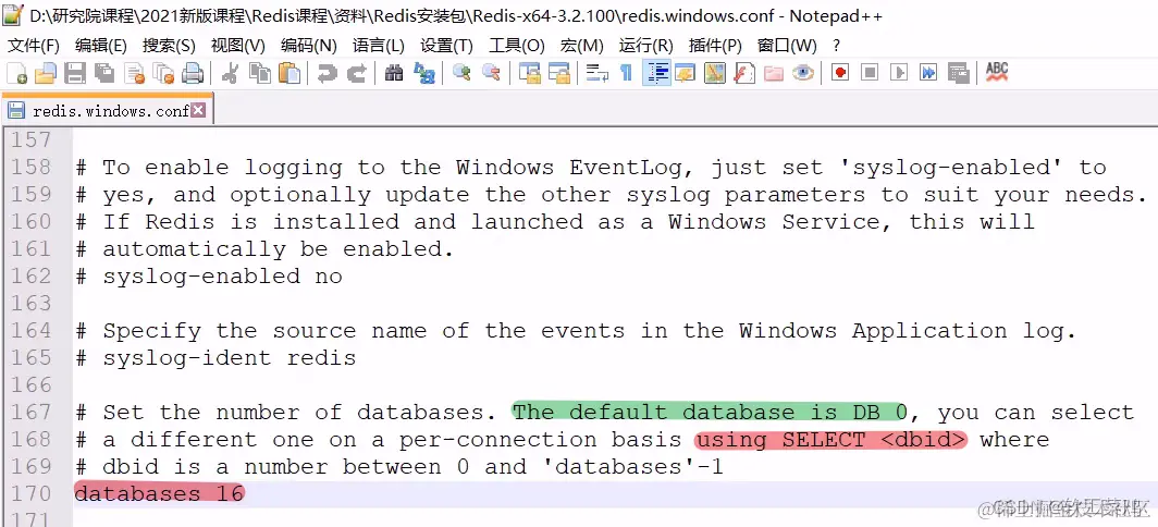 Redis服务默认会给16个数据库在redis.windows.conf里面修改