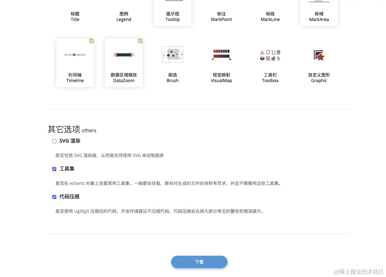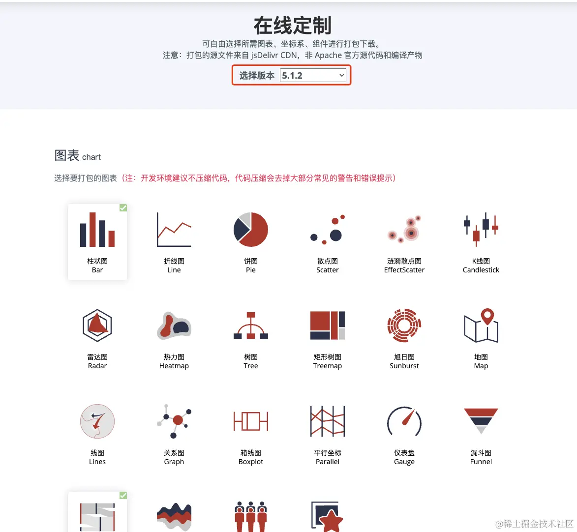 第二步,因为微信小程序主包大小限制,最好是去定制Echarts包;地址(echarts.apache.org/zh/builder.…)