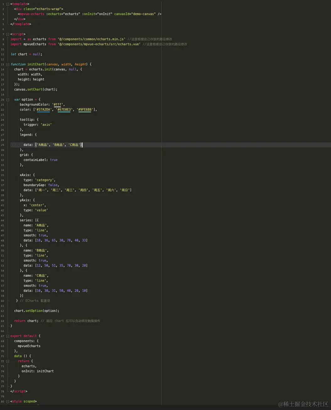 首先第一步,这里我使用的是mpvue-echarts(github.com/avocadowang…)