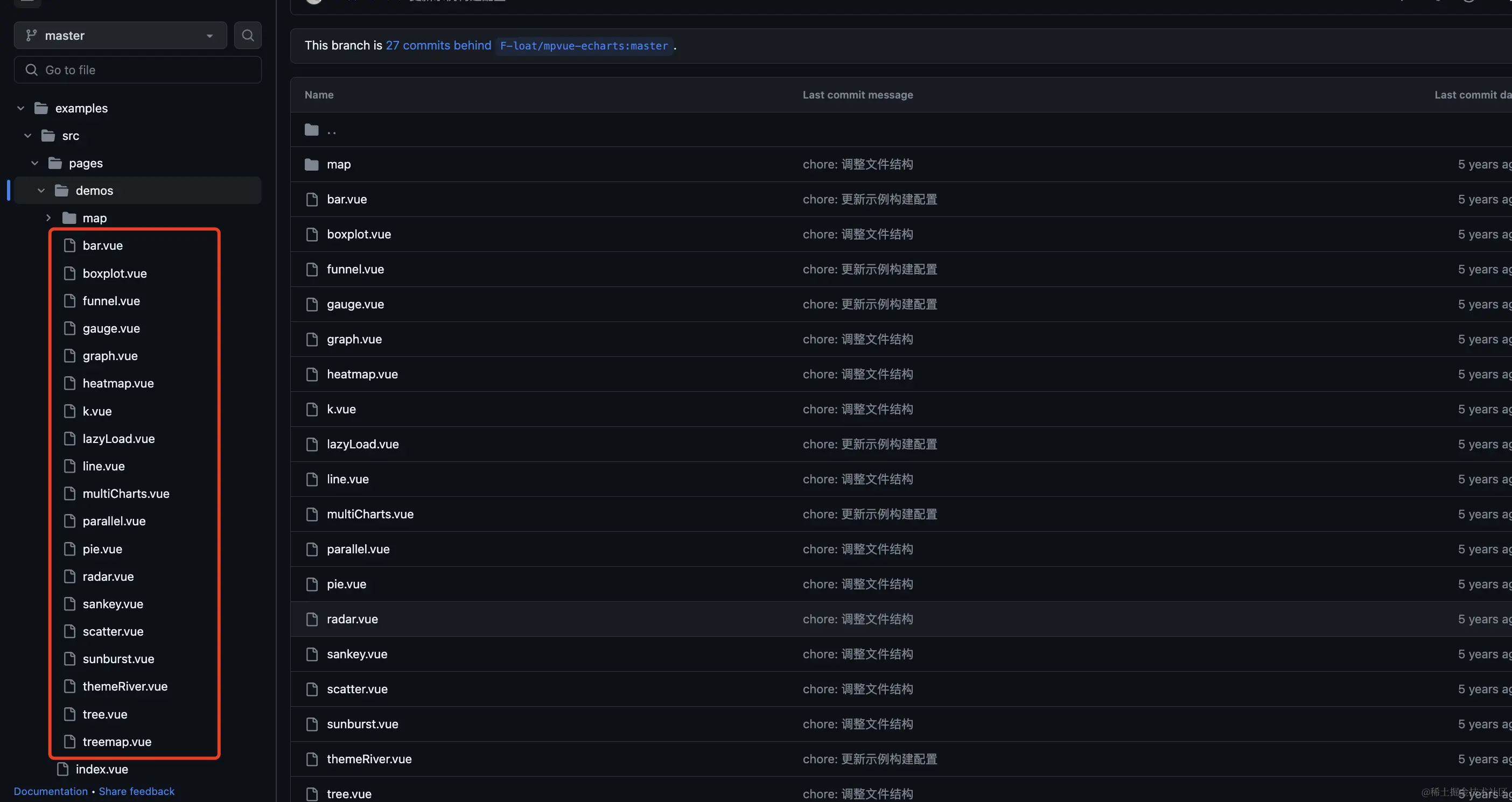 这里可以随便单独新建一个文件夹,然后把这个下载到这个文件夹,进入node_modules/mpvue-echarts目录,删除除src外的其他文件,如下:
