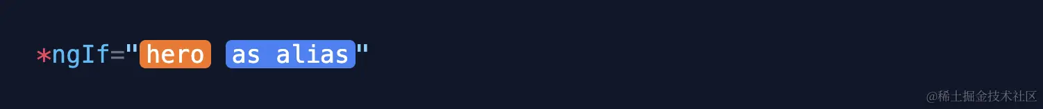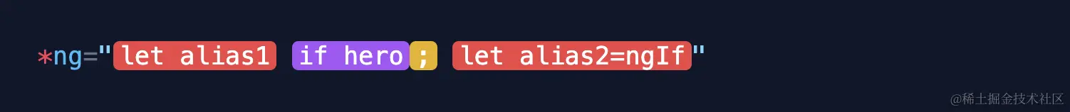 <div *ng="let alias1 if hero; let alias2=ngIf">