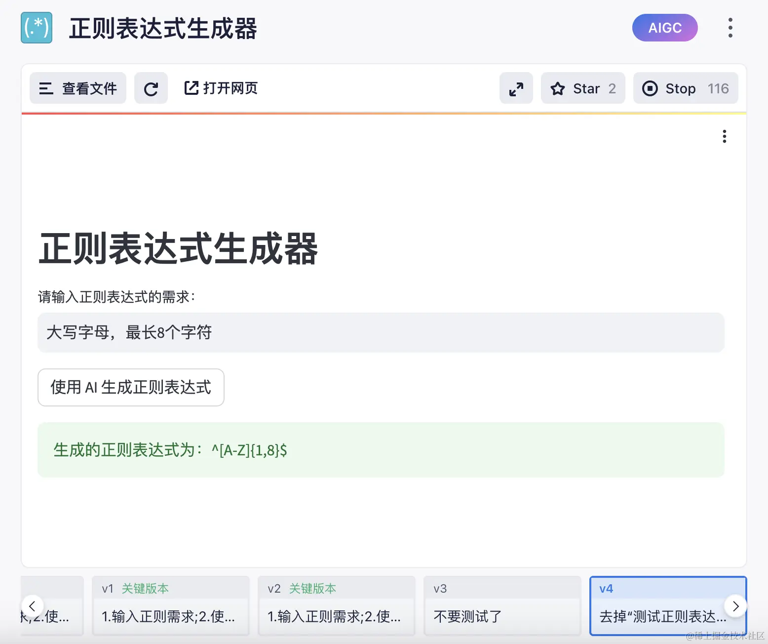 有时候首次生成的应用,并不是最终想要的效果,因为 AI 毕竟还是有一些不确定性在。好在生成一个版本后,可以继续基于当前版本进行完善。
