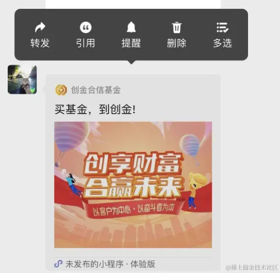 私密消息:运营人员分享小程序到个人或群之后,该消息只能在被分享者或被分享群内打开,不可以二次转发。