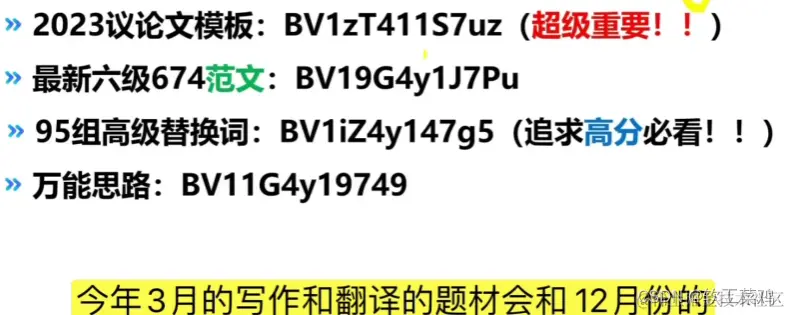 【【无广干货】六级674分作文模板(2023最新)12句,但万种组合,表达超高级!!| 四六级作文模板,四级写作模板】www.bilibili.com/video/BV1zT…(超级重要!!)