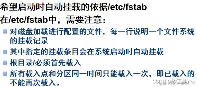 系统中的“/etc/fstab”文件可以视为mount命令的配置文件
