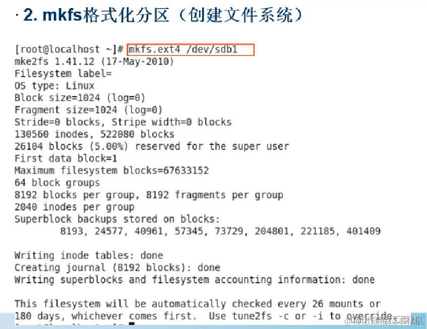 Mkfs –t ext4 /dev/sdb1