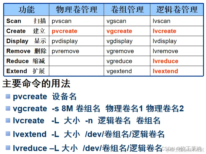 LVM的管理命令