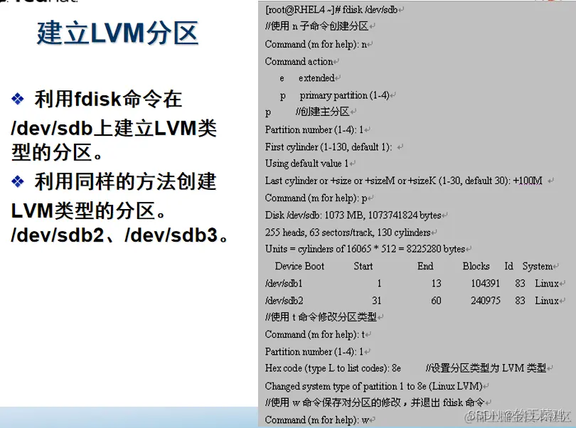 文件系统类型标识”8e“表示该分区用于” Linux LVM “