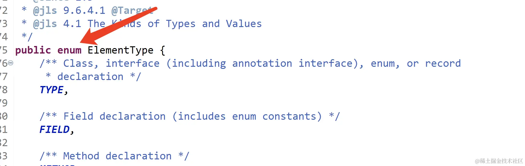 其中ElementType也是一个枚举类,主要是配合@Target注解。