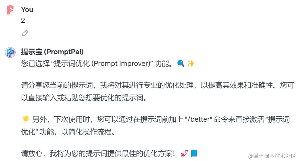 接入输入“2”进入提示词优化。