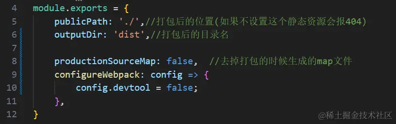 在根目录打开 vue.config.js 文件,如果没有就创建该文件,添加如下代码: