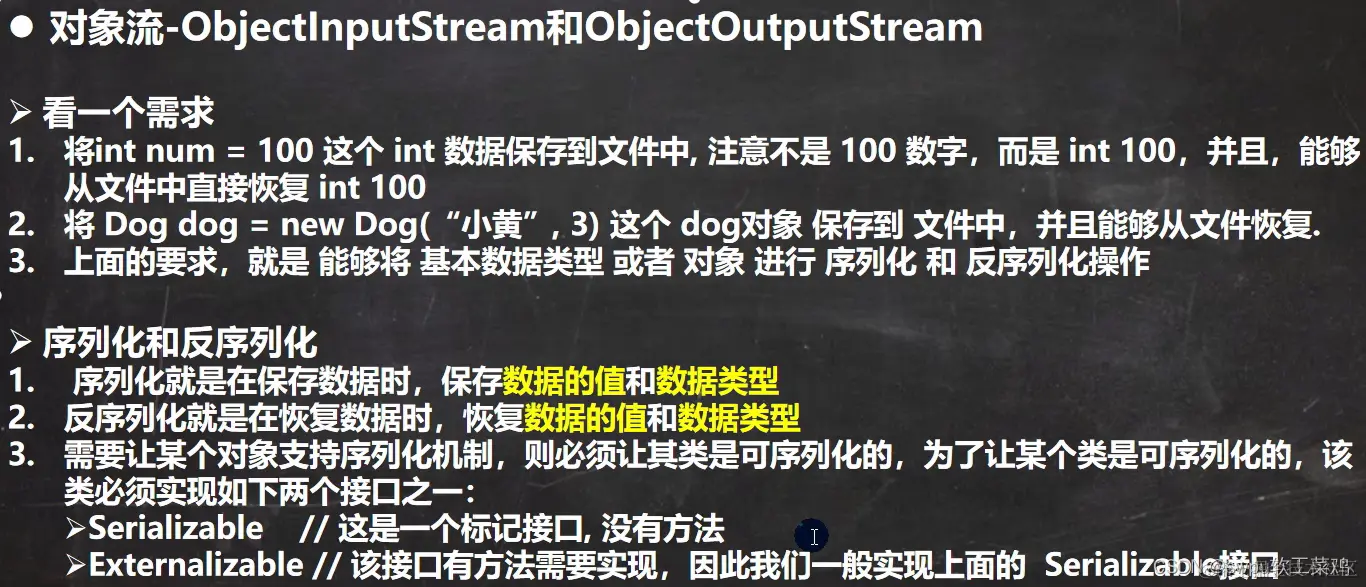 oos.writeInt(100);// int -> Integer自动装箱 (实现了 Serializable)