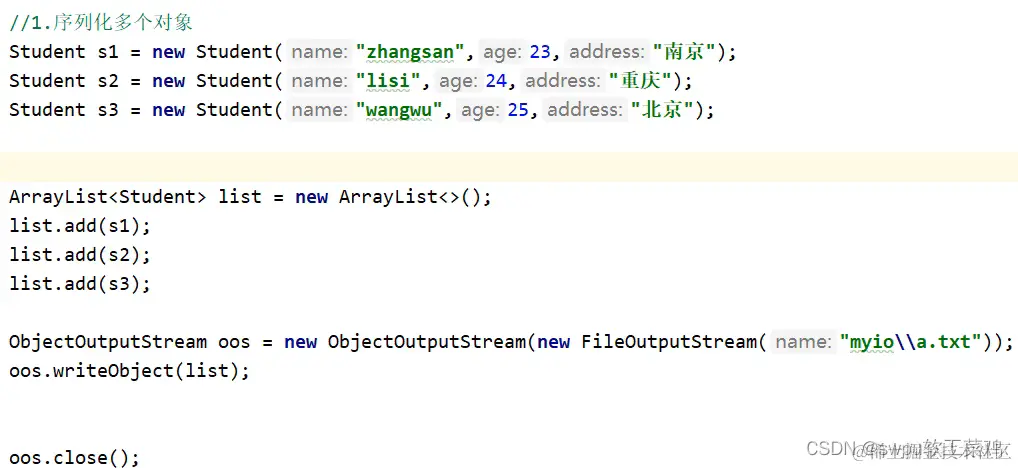 oos.writeObject(new Dog("旺财", 10, "日本", "白色"));