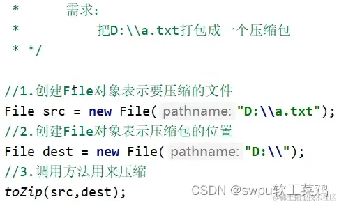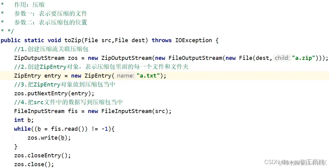 ZipEntry entry=new ZipEntry("aaa//a.txt"); // 参数如果是多级 可表示创建多级文件夹