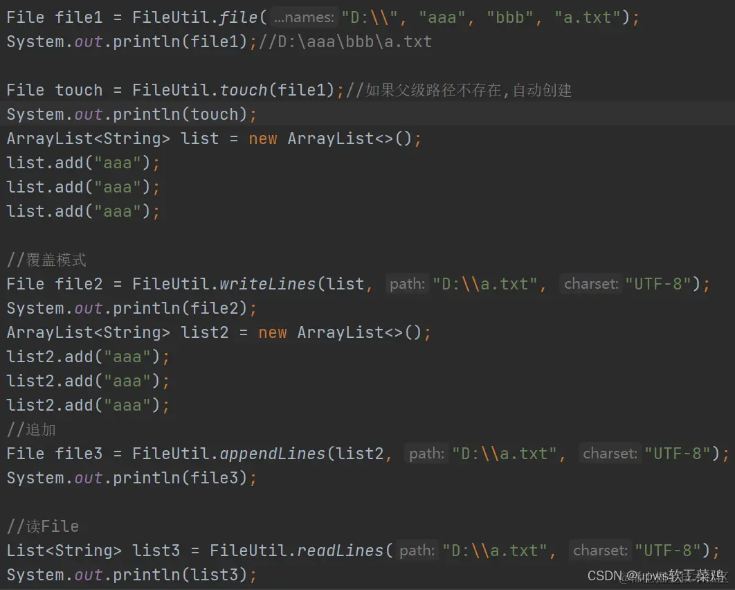 //1. new FileWriter(filePath, true) 表示以追加的方式写入