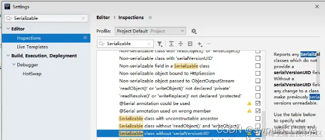 勾选两条 新版本idea中 class without 'serialVersionUID'在JVM中