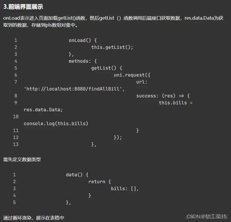 在data中定义一个空数组,用于存储遍历到的数据,例如: