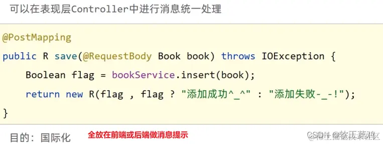 - 表现层返回结果的模型类中添加消息属性用来传递消息到页面