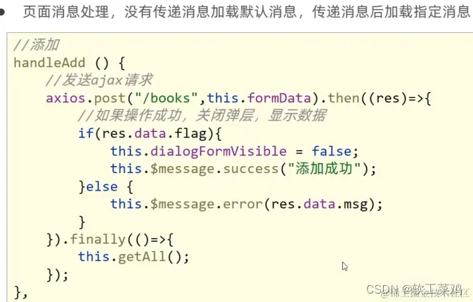 this.$message.error(res.data.msg); //消息来自于后台传递过来,而非固定内容