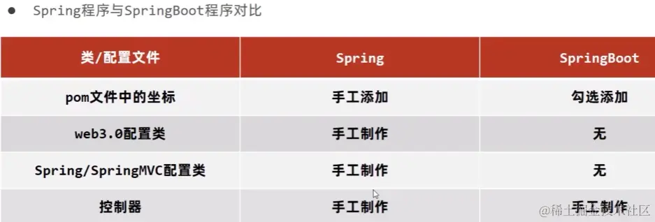 - SpringBoot开发团队认为原始的Spring程序开发的过程也有些繁琐,这个过程仍然可以简化。开发过程无外乎使用什么技术,导入对应的jar包(或坐标)然后将这个技术的核心对象交给Spring容器管理,也就是配置成Spring容器管控的bean就可以了。这都是基本操作啊,难道这些东西SpringBoot也能帮我们简化?