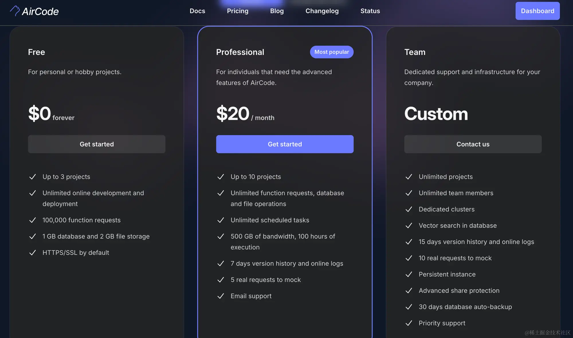 对于个人开发者,AirCode无疑更具性价比,验证一个想法前期不需要过多的成本投入,后期再考虑是否购买资源额度更多的套餐。