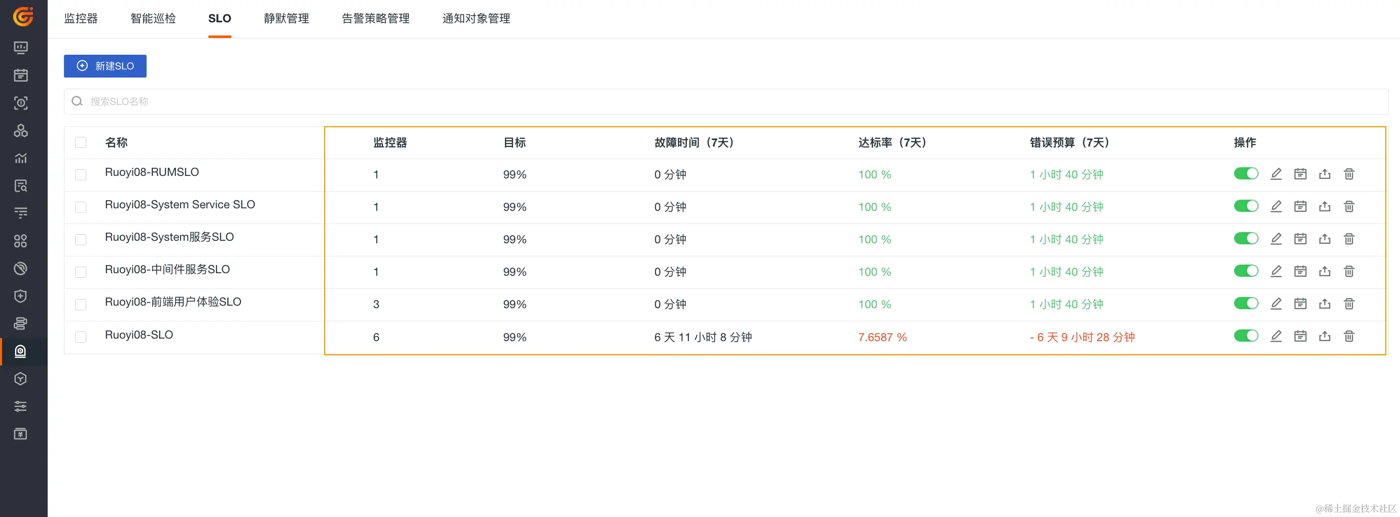 新建完任务后,在 SLO 列表进一步分析 SLO 任务达标率、目标服务水平等之前离不开以下概念: