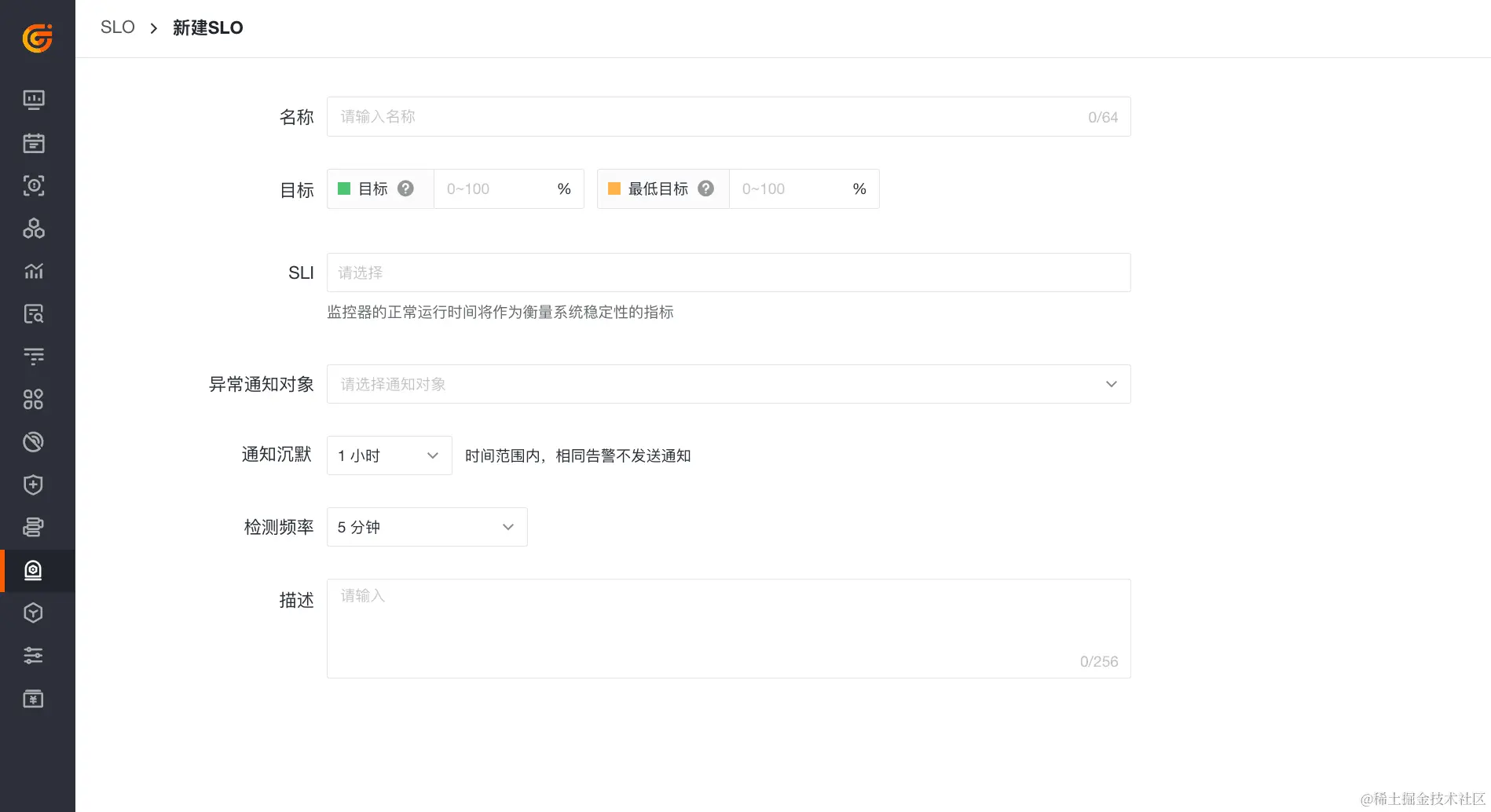在使用 SLO 的实践过程中,如下图所示,输入 SLO 任务名称后,首先需设定两个目标,即目标和最低目标。