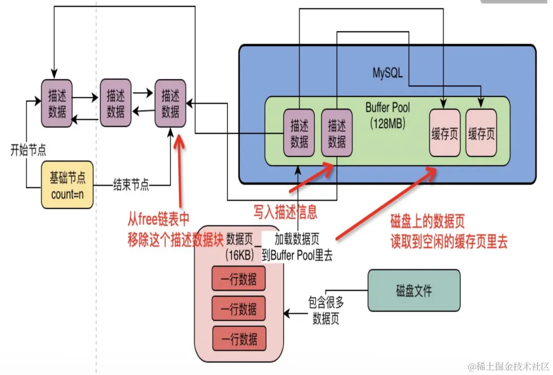 当要使用一个数据页时候,如果不在哈希表中,则从磁盘加载进来。