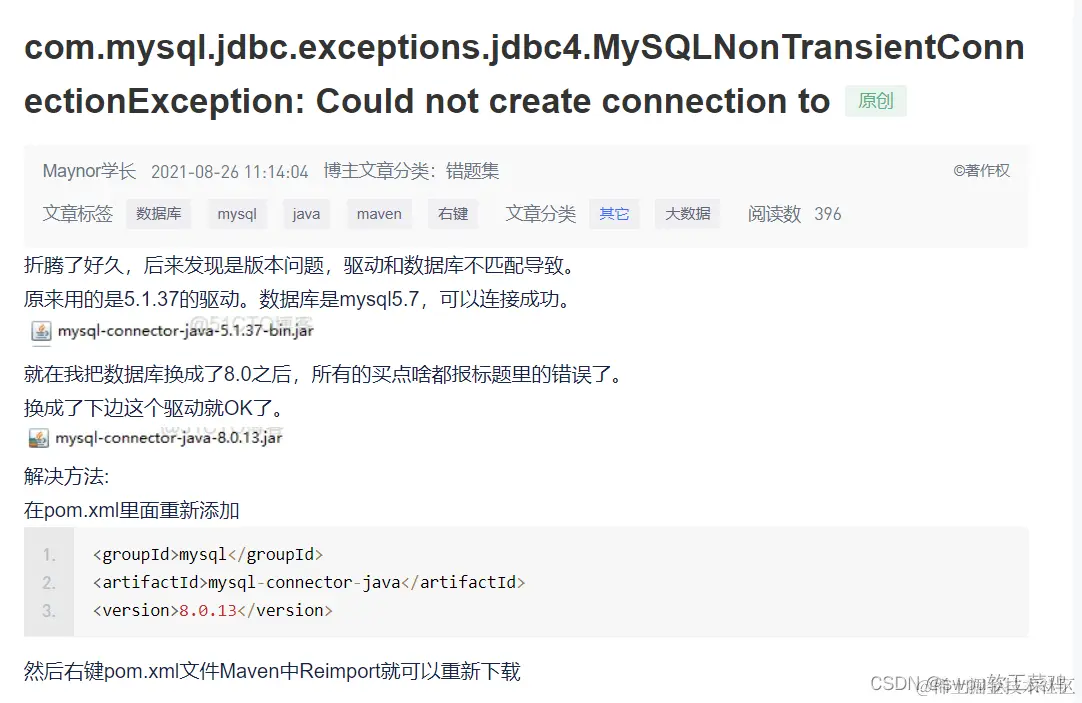 第二次遇到这个问题又是驱动版本问题,我的mysql是8.0版本所以得用新版本的connector