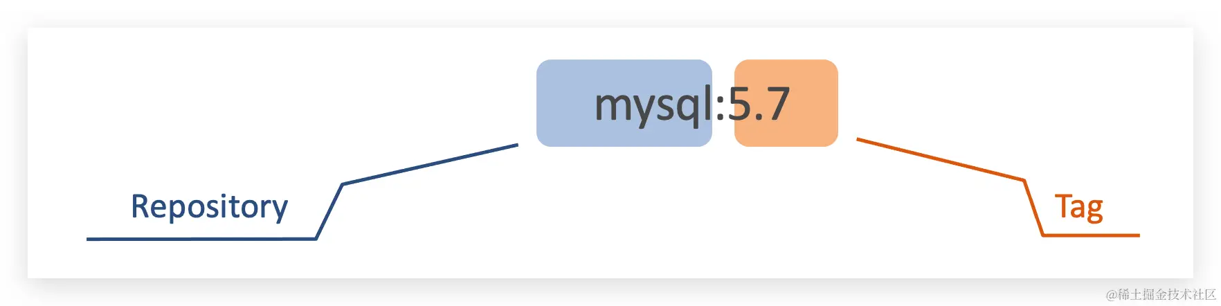 这里的mysql就是repository,5.7就是tag,合一起就是镜像名称,代表5.7版本的MySQL镜像。