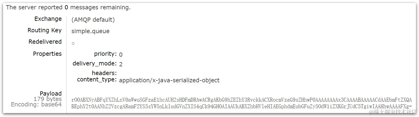 之前说过,Spring会把你发送的消息序列化为字节发送给MQ,接收消息的时候,还会把字节反序列化为Java对象。