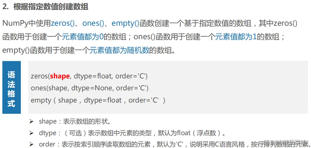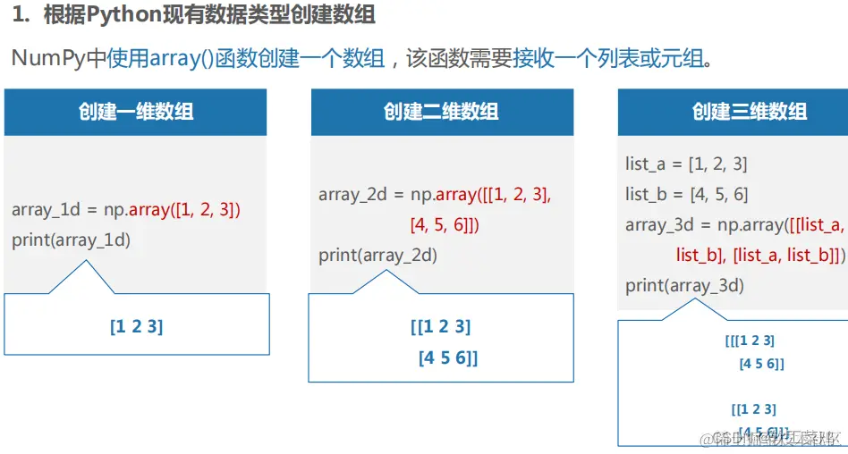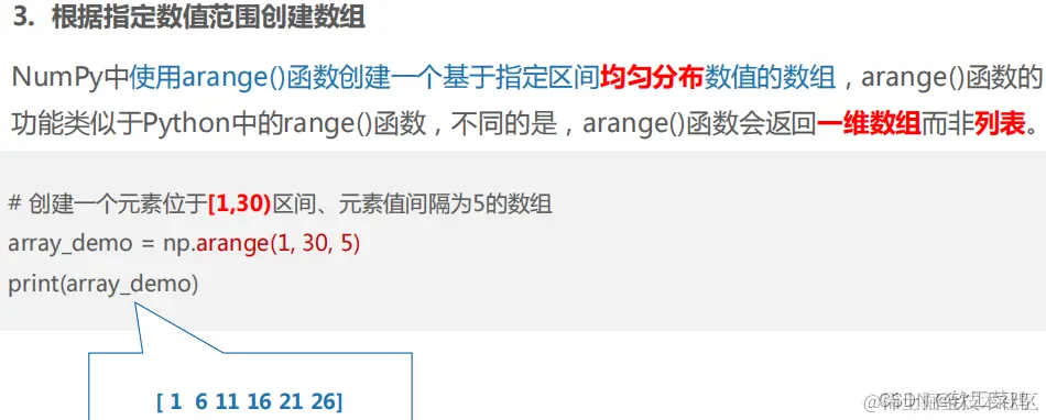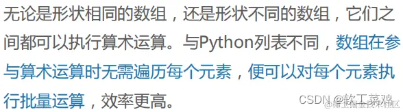 NumPy中提供了一个重要的数据结构是ndarray(又称为array)对象,该对象是一个N 维数组对象,可以存储相同类型、以多种形式组织的数据。 与Python中的数组相比,ndarray对象可以处理结构更复杂的数据