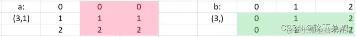 白色部分是原始数值;红绿部分是a,b广播相加的补充;