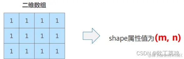 shape属性表示数组的形状,也就是数组中各维度的大小,该属性的值为一个形如(行,列)的元组。