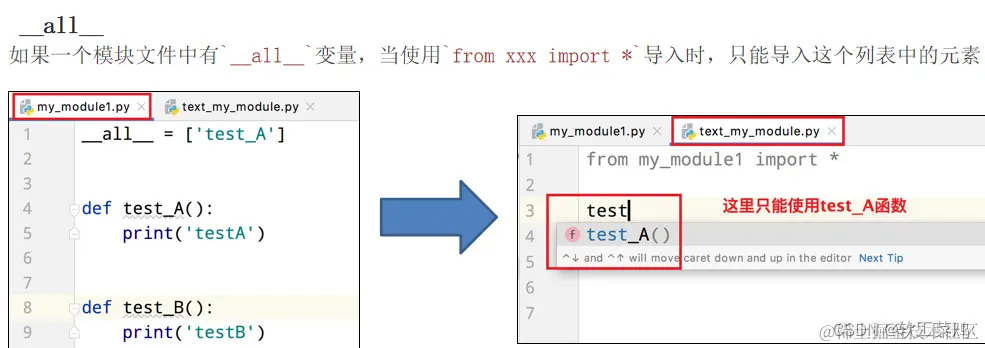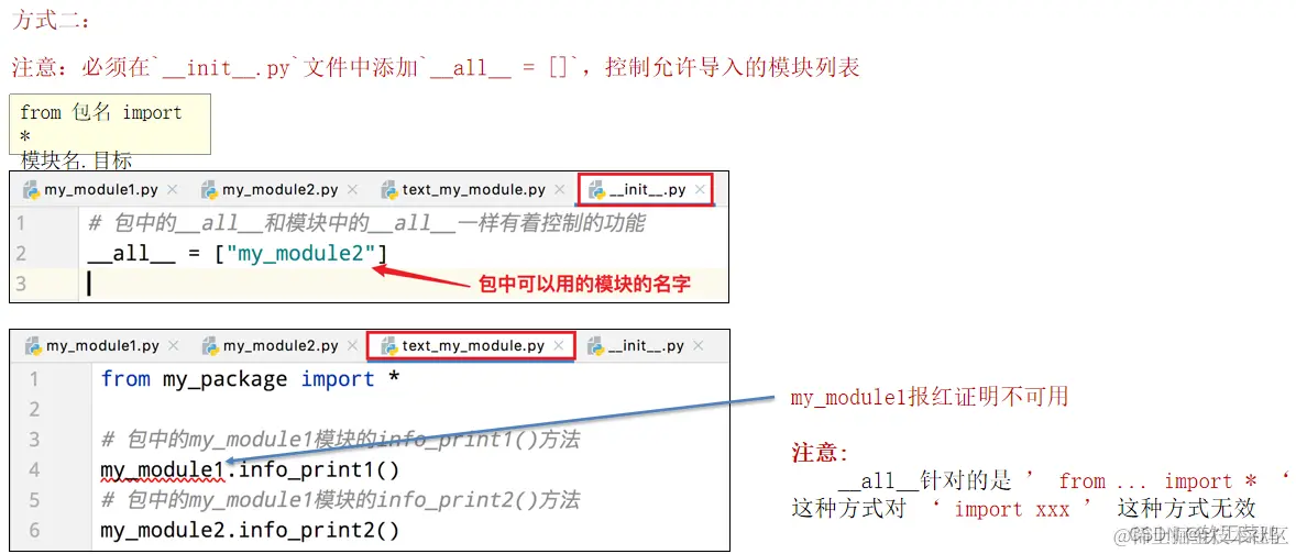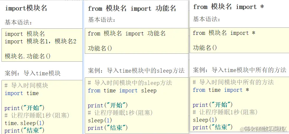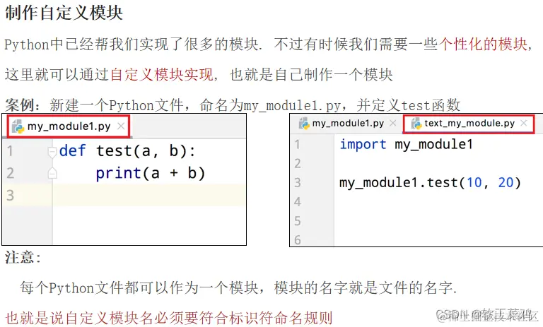 注意事项:当导入多个模块的时候,且模块内有同名功能. 当调用这个同名功能的时候,调用到的是后面导入的模块的功能