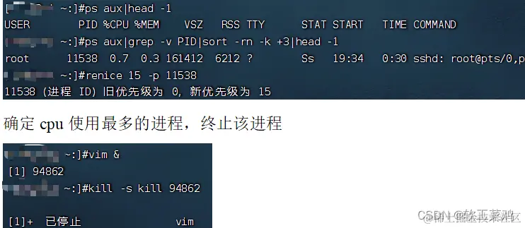 确定内存使用最多的进程,将其nice优先级调整为15