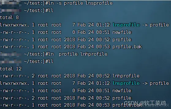 给文件profile创建一个软链接lnsprofile和一个硬链接lnhprofile