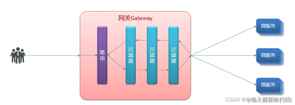在微服务当中,所有的请求都要先经过网关,在到微服务;这样就不要在每个微服务进行处理,只需要在网关中进行处理!