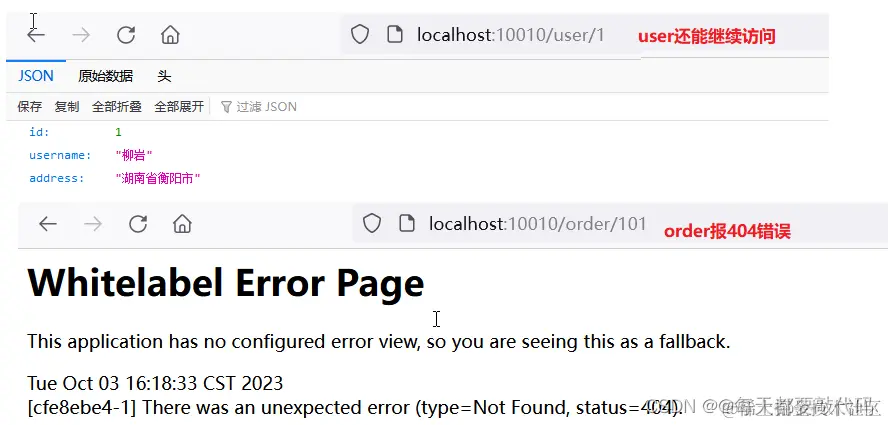 启动服务,此时访问就不需要:http://localhost:8080/order/101 而是http://localhost:10010/order/101 这种形式
