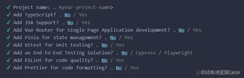 接下来,将会看到一些诸如 TypeScript 和测试支持之类的可选功能提示: