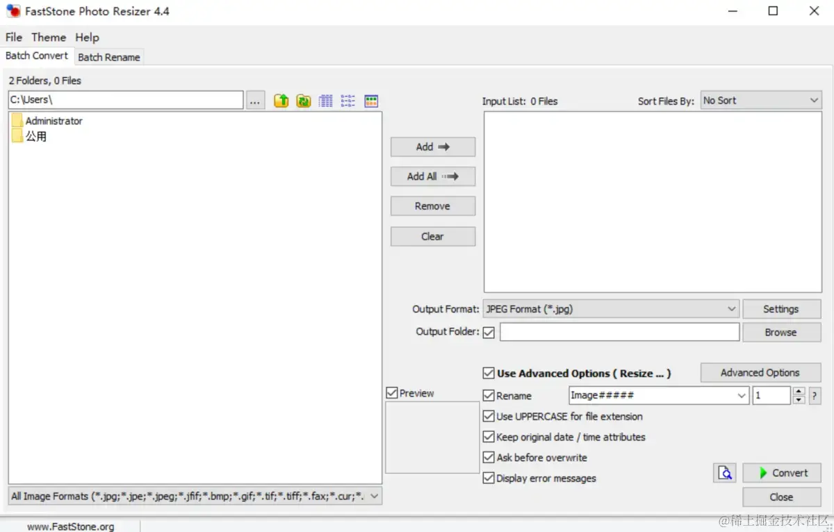 不要被这个软件名字所蒙蔽,它内涵丰富,能力超凡!接下来,让我向你展示,绝对会让你惊叹不已!这款软件名为FastStone Photo Resizer,是一款强大的图片批量处理工具。它拥有着无与伦比的功能,超乎你的想象,让你心动不已。它是一款免费的图片处理工具,支持批量操作,让你事半功倍。无论是格式转换、重命名、剪裁,还是调整大小、旋转、改变颜色深度。你还可以轻松添加水印、文字、边框,让你的图片更加独特精彩。无论是个人还是工作需求,它都能满足你的一切期待。