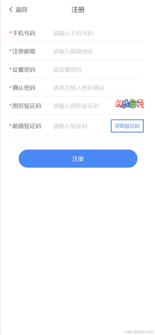 这样等用户输入邮箱里的验证码后,点击注册按钮,我们就可能正式开始注册操作了。