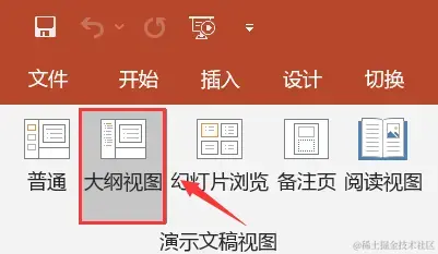 步骤1:在PowerPoint中,点击 【查看】>【大纲视图】 ;