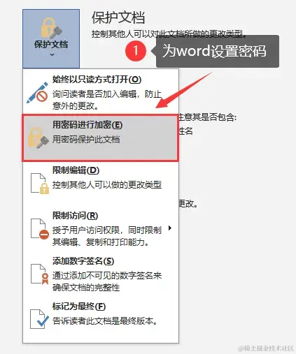 步骤3:找到 【保护文档】 下的【用密码进行加密】;