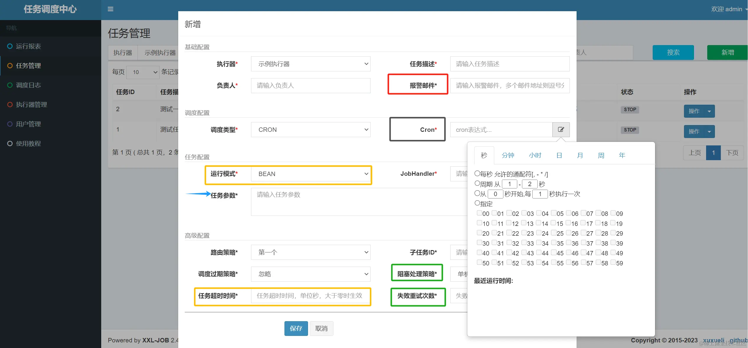- 10、任务超时控制:支持自定义任务超时时间,任务运行超时将会主动中断任务;