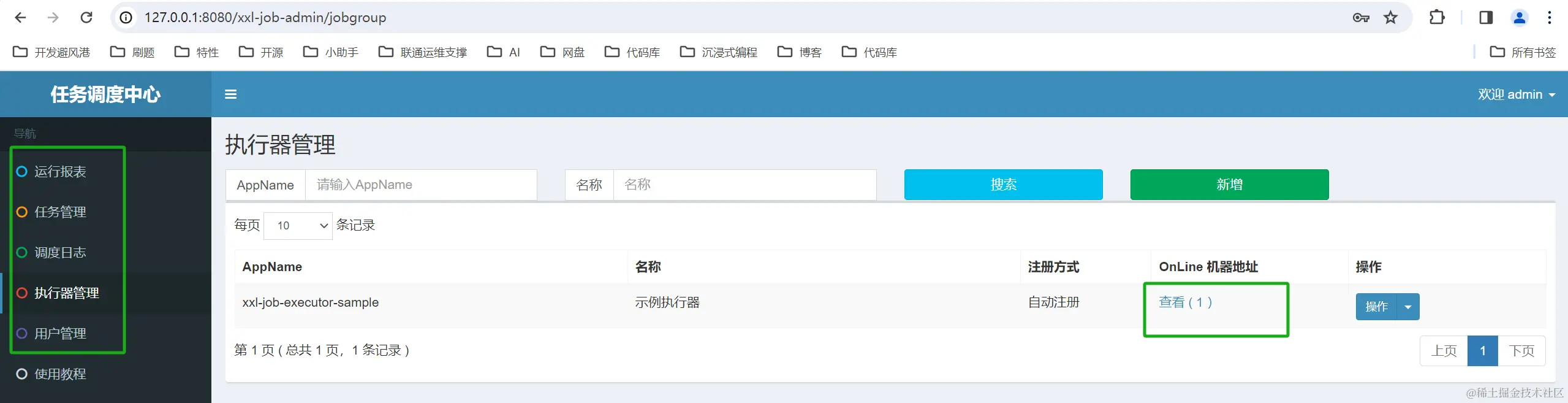 可以看到执行器被调度中心检测到纳入管理了!